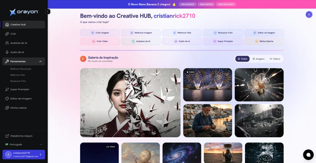 Hub com as melhores IAs + 800 Créditos